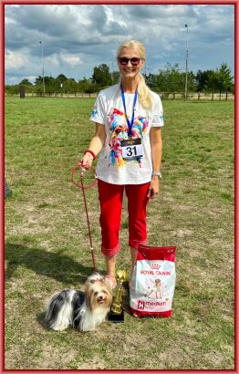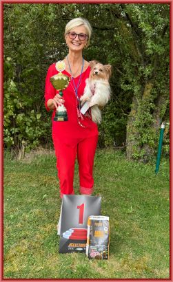 Sie hat für alle drei Tagestitel V1 erhalten, hat das Nationale Championat erhalten, wurde "Best of Hündin Platz1", "Best of Champion Group", somit Best of Show,